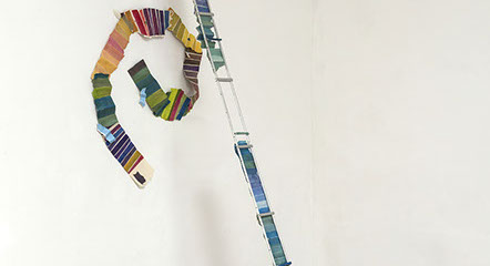 Segundo el abanico y los prenses dividen el espacio de una manera tridimensional que suele acompañar a la escultura, de tal forma, que esta obra es pintura pero al mismo tiempo escultura, como es el caso de la obra Una escalera al cielo y una escalera adentro (2019) en donde la parte escultórica tiene la misma importancia que la pintura, y anuncia la relación con la vida espiritual de la artista.
